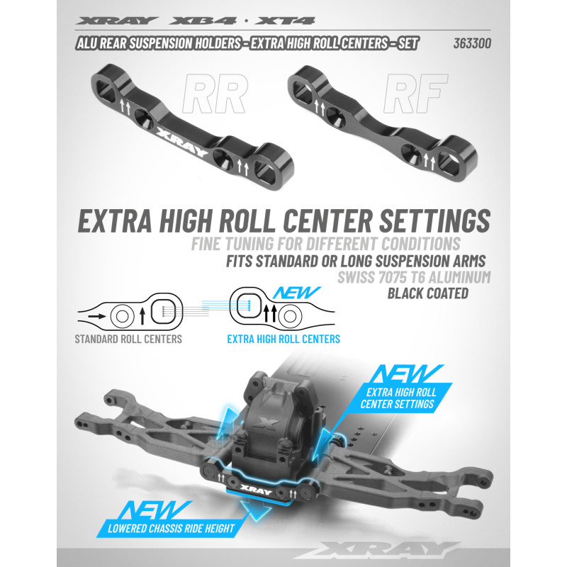 ALU REAR SUSPENSION HOLDERS - HIGH ROLL CENTERS - SET - XRAY - 363300