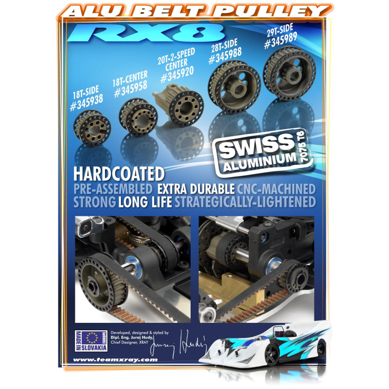 ALU FRONT BELT PULLEY 18T o6 - CENTER - SET - 345958 - XRAY