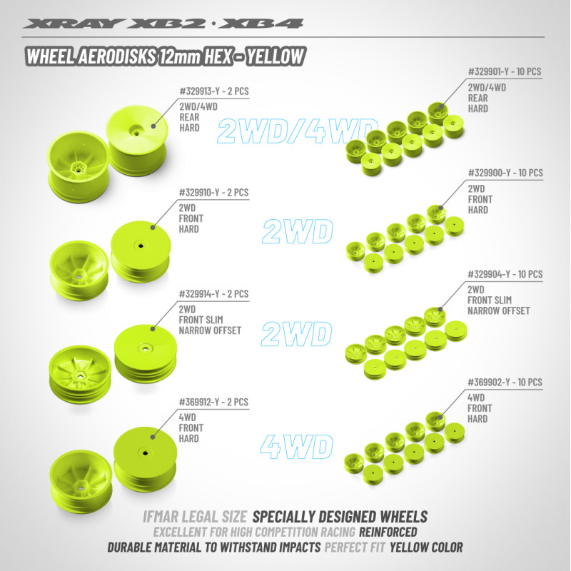 Jantes TT 1/10 avant 2WD - Jaune (2) - 803210-Y