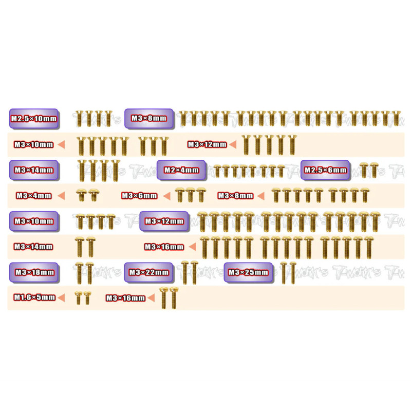 Kit Vis Acier Nitride Doré ASSO B7/B7D (111) - T-WORKS - GSS-RC10B7Agrandir l'image