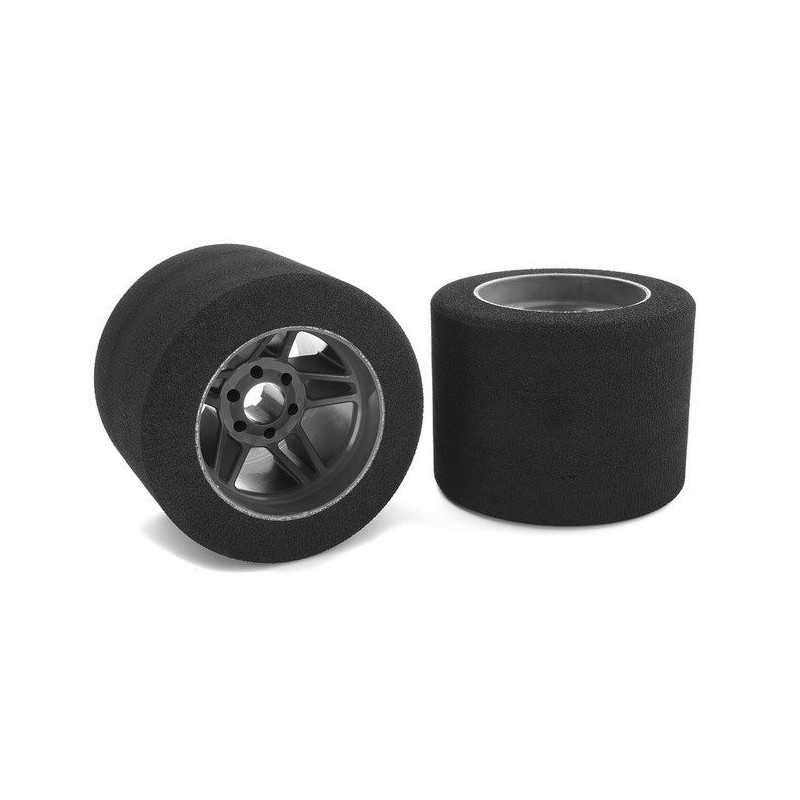 Pneus piste 1/8 arrière 76mm 35 Shore sur jantes carbone (2)