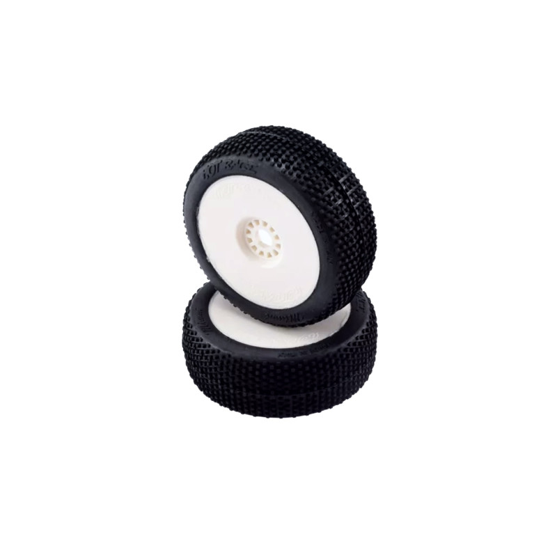 Pneus piste 1/10 avant 37 Shore sur jantes blanches (2)