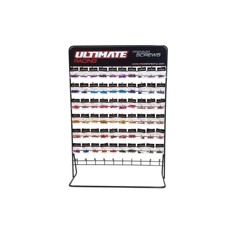 Présentoir composé de rondelles et écrous anodisés du 3 au 4mm