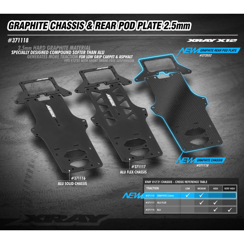Description X12'21 Châssis carbone 2.5mm - 371118